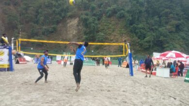 38वें राष्ट्रीय खेलों के अंतर्गत शिवपुरी स्थित नदी तट पर 12 राज्यों की 24 टीमों के मध्य हुआ वालीबाल मुकाबला,8 टीमें क्वार्टर फाइनल में पहुंची