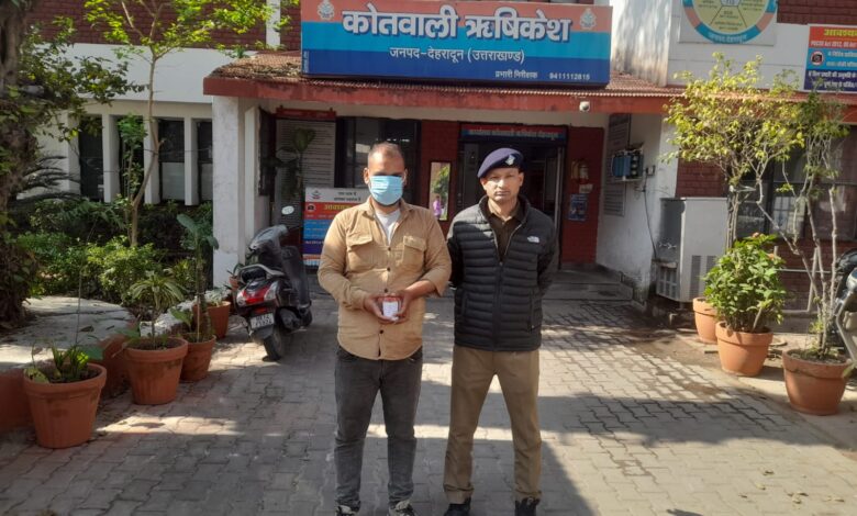 पुलिस के अनुसार 20 फरवरी 2026 को गठित टीम क्षेत्र में गश्त और सघन चेकिंग अभियान चला रही थी। इसी दौरान दून इंस्टीट्यूट के पास रेलवे ट्रैक, ऋषिकेश से एक संदिग्ध युवक को रोका गया। तलाशी लेने पर उसकी शर्ट की बायीं जेब से सफेद पारदर्शी पन्नी में रखा भूरा डलीनुमा व चूर्णनुमा पदार्थ बरामद हुआ।