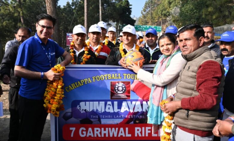 टिहरी लेक फेस्टिवल में करियप्पा फुटबॉल टूर्नामेंट का आगाज, 16 टीमों का भव्य मार्च पास्ट