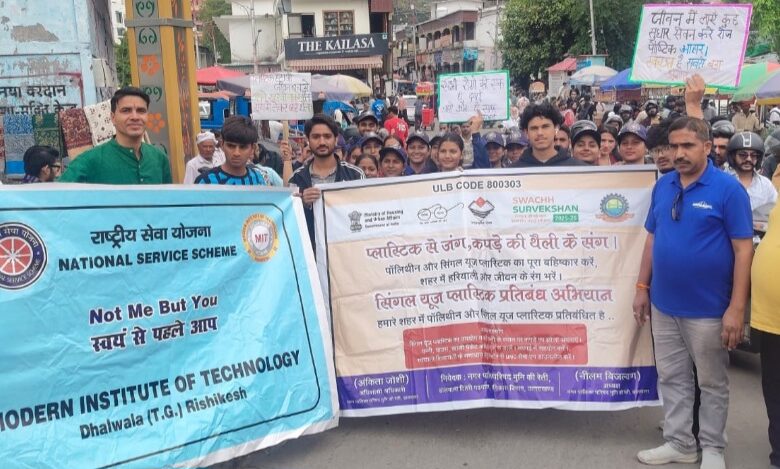 रैली में एमआईटी एनएसएस के समन्वयक डॉ. रितेश जोशी, राजेश चौधरी, योगेश लखेड़ा, नगर पालिका सुपरवाइजर जितेंद्र सिंह सजवाण सहित एनएसएस के सभी स्वयंसेवकों ने उत्साहपूर्वक सहभागिता की। कार्यक्रम के माध्यम से स्वच्छता और पर्यावरण संरक्षण के प्रति सकारात्मक संदेश प्रसारित किया गया।
