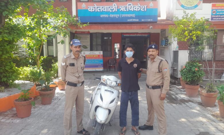 ऋषिकेश, दिनांक: 05 अप्रैल(दिलीप शर्मा): ऋषिकेश कोतवाली क्षेत्र में हुई वाहन चोरी की घटना का पुलिस ने सफल अनावरण करते हुए एक अभियुक्त को गिरफ्तार कर लिया है। पुलिस ने आरोपी के कब्जे से चोरी की स्कूटी भी बरामद की है।