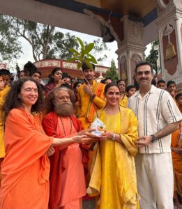 पौड़ी / परमार्थ निकेतन (ऋषिकेश), 28 जून : सिनेमा की चकाचैंध से आध्यात्मिक दिव्यता की ओर एक प्रेरणादायक यात्रा के तहत, प्रसिद्ध बॉलीवुड अभिनेत्री एवं धर्मेंद्र और हेमा मालिनी की सुपुत्री ईशा देओल तख्तानी अपने पति, व्यवसायी भरत तख्तानी के साथ परमार्थ निकेतन पहुंची। इस पावन अवसर पर उन्होंने माँ गंगा की आरती में सहभाग किया और पूज्य स्वामी चिदानन्द सरस्वती एवं साध्वी भगवती सरस्वती से भेंट कर उनका आशीर्वाद प्राप्त किया।