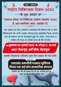 राष्ट्रीय चिकित्सक दिवस–2025 के शुभ अवसर पर “स्वास्थ्य संवाद एवं चिकित्सा सम्मान समारोह–2025”