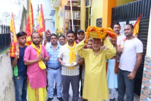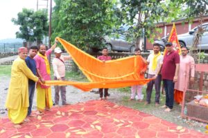 सुबह के समय 14 बीघा निवासी देवेंद्र दत्त जोशी के निवास स्थान से महाध्वजा को विधिवत पूजन के साथ जय श्रीराम के जयकारों के बीच शोभायात्रा के रूप में रामलीला मैदान, नया पुल लाया गया। जहां वैदिक मंत्रोच्चारण के बीच ध्वज पूजन संपन्न हुआ और इसे रामलीला मैदान में स्थापित किया गया। इस दौरान पूरा परिसर भक्तिमय माहौल से गूंज उठा।
