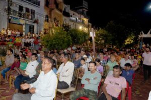 रामलीला मंचन को देखने के लिए क्षेत्रभर से श्रद्धालु एवं दर्शक बड़ी संख्या में पहुंचे और जयकारों से पूरा परिसर गूंज उठा।