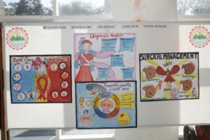 कार्यक्रम में नर्सिंग छात्रों द्वारा स्तन कैंसर जागरूकता से जुड़े पोस्टरों का भी प्रदर्शन किया गया।